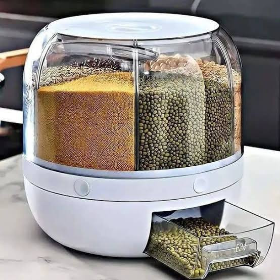 ظرف حبوبات و جا حبوبات وارداتی ضد نم و رطوبت، این کار دارای 6 مخزن مختلف هست که با فشار دادن دکمه هر مخزن میتونید اقدام به تخلیه هر کدام بکنید همچنین محفظه ای برای سیر روی درب هست تا از نزدیک شدن حشره به مواد غذایی جلوگیری کنه و با فشار دادن دکمه به راحتی حبوبات رو از خروجی زیر کار به داخل کشو تخلیه میکنه