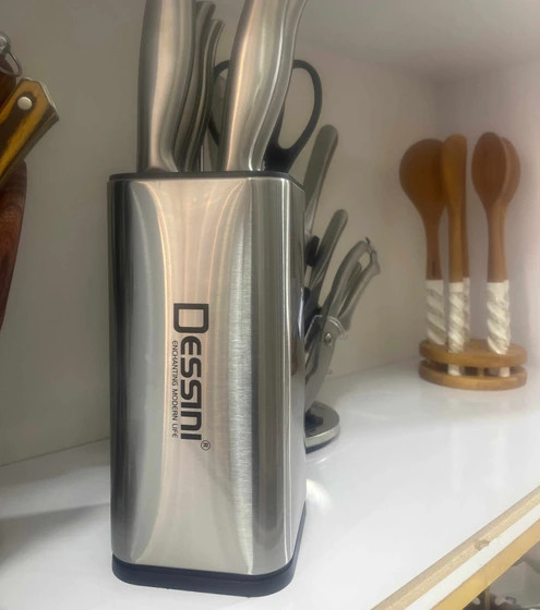 سرویس چاقو دسینی سرویس چاقو دسینی، یکی از ست چاقو های جنس عالی میلاشد سرویس های چند پارچه چاقو این امکان را به شما میدهد که ست کاملی از کارد آشپزخانه را در خانه داشته باشید. مخصوصا کسانی که مهمان دارند داشتن سرویسی از چاقو ضروری به نظر می رسد. سرویس چند پارچه چاقو انتخابی خوب برای جهیزیه عروس هم می باشد. سرویس چند پارچه دسینی لازم برای هر آشپرخانه از ساطور تا چاقو تیز کن را هم به صورت کامل دارد. ست چاقو از پوست كندن تا برش و … می تواند كارايي بسيار داشته باشد. از طرفی هم مرغوب بودن جنس ست کارد کامل برای خانم ها بسیار با اهمیت است. ست ۹ پارچه مارک دسینی مشخصات سرویس تيغه ها و دسته این ست کارد از جنس استيل ضد زنگ است. اين ست چاقو به صورت 9 پارچه بوده كه متشكل از: 5 عدد چاقو که شامل : یک عدد ساطور ، یک چاقو سر آشپز و سه عدد چاقو در سایز های مختلف که همه کاره اند ، یک عدد قیچی آشپزخانه ، یک عدد تیز کننده چاقو و یک عدد پوست کن به همراه پایه نگهداره رومیزی چاقوها طراحی شده که در کنار سایر لوازم اشپز خانه قرار بگیرد.