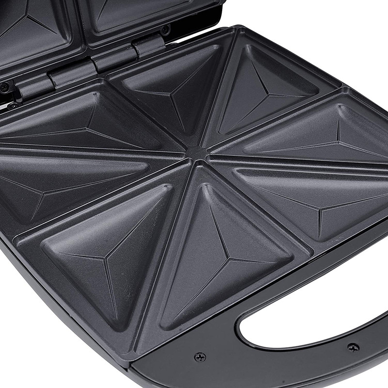 تابه ی نچسب, ,, دستگاه در هر بار استفاده قادر به تهیه 4 ساندویچ می باشد, ,, دو صفحه جداپذیر نچسب برای پخت کباب و ساندویچ, ,, ساندویچ ساز, اسنک ساز, گریل, استیک پز, ,, صفحات پخت با پوشش نچسب, ,, صفحه جدا شونده متحرک و قابل شستشو, ,, عنصر گرمایش پنهان شده, ,, کنترل دما برای سطوح مختلف پخت و پز