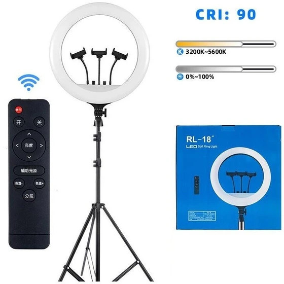 دمای رنگ قابل تنظیم: بسیاری از رینگ لایتهای RL-18 امکان تغییر دمای رنگ نور (از نور سرد تا گرم) را دارند، که به شما اجازه میدهد نور را با شرایط محیطی سازگار کنید.