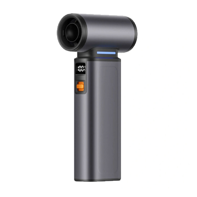 ویژگی مقدار مدل F1 نوع موتور براشلس (Brushless) سرعت چرخش 130,000 RPM فشار باد >200g قدرت مکش >5000Pa باتری 7.4V / 4000mAh (2×21700 cells) مدت کارکرد بیش از 10 دقیقه در حالت قوی زمان شارژ 4–5 ساعت درگاه شارژ USB Type-C جنس بدنه آلومینیوم + پلاستیک با روکش اسپری روغنی صدا کمتر از 70dB وزن خالص 268 گرم قابلیتها دمنده، مکنده، فن خنککننده، بادکن نمایشگر LED دیجیتال نور محیطی آبی رنگ خاکستری تیره با دکمه نارنجی منبع تغذیه USB (5V 2A)
