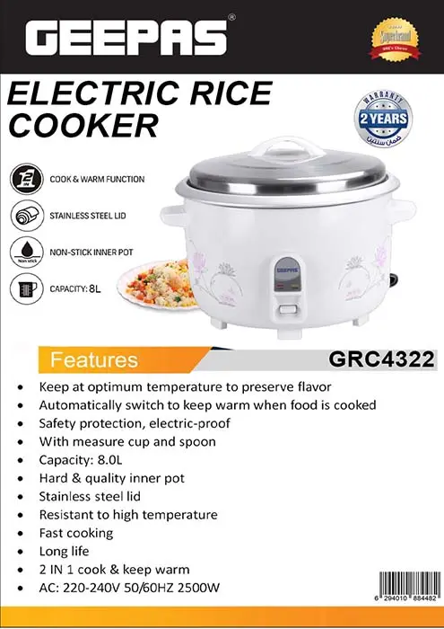 پلوپز جیپاس مدل GRC4322 ظرفیت ۸ لیتر با بدنه استیل ضد زنگ