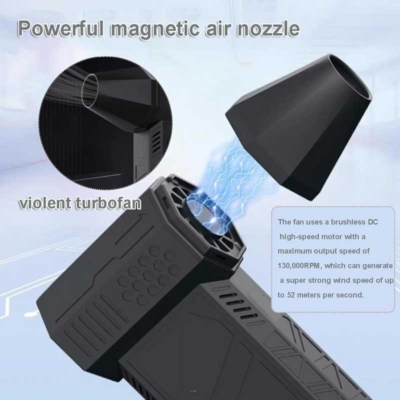 دمنده فن جت فن شارژی مدل توربو 1 با 130000 دور در دقیقه، دمنده جت کوچک قابل حمل با 3 سرعت قابل تنظیم، خشک کن ماشین دمنده هوای بی سیم و شارژی جهت غبار زدایی از کامپیوتر، صفحه کلید و لنز دوربین ، یک دمنده هوای جمع و جور و سبک که میتواند تا سرعت چشمگیر ۱۳۰،۰۰۰ دور در دقیقه بچرخد. این دمنده هوای کوچک با حداکثر سرعت جریان هوای ۵۲ متر بر ثانیه، برای خشک کردن سریع سطوح و ارائه جریان هوای استثنایی طراحی شده است. این دمنده هوا با ۳ سرعت قابل تنظیم، برای تمام نیازهای شما مناسب است. این مینی جت فن دارای یک نازل مغناطیسی است که جریان هوا را برای خشک کردن سریعتر متمرکز میکند. با گردگیری و خشک کردن خستهکننده خداحافظی کنید زیرا به سرعت گرد و غبار و کثیفی را از هر گوشهای پاک میکند و سطوح را بینقص و بدون رگه باقی میگذارد. 【باتری بادوام و شارژ سریع】 با طراحی قابل شارژ بیسیم و کابل شارژ USB Type-C، این دستگاه گردگیری هوا میتواند با یک بار شارژ کامل تا ۳-۴ ساعت کار کند. عملکرد محافظت در برابر گرمای بیش از حد و دریچههای خنککننده متعدد آن، عملکرد ایمن را تضمین کرده و عمر محصول را بیش از ۱/۳ افزایش میدهد.