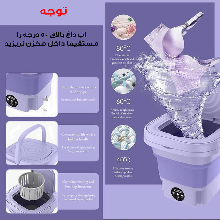 مینی واش مدل MLSC-01 یک محصول فوق العاده کاربردی مناسب برای سفر و استفاده در خانه برای صرفه جویی در زمان و هزینه آب و برق است . این محصول مناسب شست و شوی سریع و راحت لباس های ساده مثل جوراب و لباس زیر و لباس کودک است که با لکه بری قدرتمند با کم ترین مصرف آب و برق است. همچنین علاوه بر اینکه این مینی ماشین لباس شویی را می توانید در منزل استفاده کنید ، می توانید برای سفر و کمپینگ هم همراهتان باشد و خیالتون از کثیف شدن لباس هاتون راحت باشد . یکی از مهم ترین نکاتی که میشود به ان اشاره کرد دارای خشک کن است و دیگر نگران خشک کردن لباس ها نباشید . از ویژگی های این محصول می توان به قا.این مینی لباس شویی در 2 رنگ جذاب ارائه شده است .