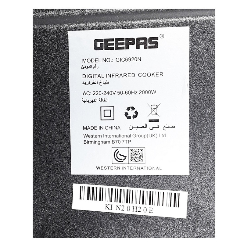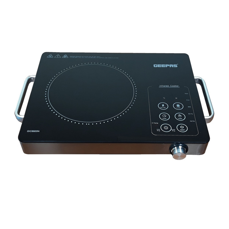 شرکت جی پاس GEEPAS با عرضه بیش از 1500 کالا در زمینه لوازم برقی و خانگی و ... بیش از 37 سال است که در آسیا و اروپا فعالیت مستمر دارد.اجاق گاز مادون قرمز ( Infrared) یا بعبارتی اجاق برقی القایی مدل GIC6920N با دارا بودن صفحه شیشه ای مشکی یک دست بسیار مقاوم به حرارت بطور یکدست در بالای اجاق ، تنها حرارت را در محدوده دایروی که با خط چین نیز مشخص شده است ایجاد می کند و در بقیه مناطق صفحه دما کاملا با دمای محیط یکسان است .می توان هر گونه ظرفی را برروی دستگاه قرار داده و دمای حرارت ساطع شده را از 60 درجه تا 2000 درجه سانتیگراد تنظیم کرد . اجاق دارای صفحه نمایش سون سگمنت با 4 رقم می باشد که می توان دما و زمان تنظیم شده تایمر و ولتاژ برق را نیز مشاهده کرد. گرمای ساطع شده را می توان در دو حالت حلقوی و یا مرکزی و نیز ترکیب این دو با هم ایجاد کرد.دستگاه دارای قفل می باشد که با نگه داشتن بمدت 5 ثانیه فعال و نیز به همین صورت غیر فعال می شود . کل عملیات کنترل بطور کامل لمسی است . توان حرارتی دستگاه 2000 وات می باشد دستگاه از تایمر 3 ساعته برخوردار می باشد .با روشن شدن دستگاه فن آن به کار می افتد و بعد از خاموش کردن دستگاه نیز تا هنگام خنک شدن کامل دستگاه جهت جلوگیری از آسیب رسیدن به دستگاه و یا کاربر ، فن کار می کند و بطور خودکار خاموش می شود پس دستگاه را تا هنگام خاموش نشدن فن از برق نباید خارج کرد .دستگاه دارای 3 شاخه خارجی مجهز به فیوز داخلی جهت حفاظت از شبکه برق خانگی و خود دستگاه برخوردار است.