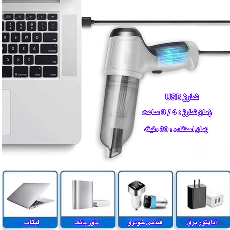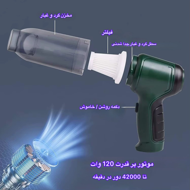 جاروبرقی چندکاره مدل KY-107 یک دستگاه سبک، قابل حمل و با طراحی ارگونومیک است که برای تمیزکاری سطوح مختلف از جمله کیبورد، خودرو، گوشههای دشوار، لوازم الکترونیکی و سایر فضاهای کوچک و دسترسیپذیر طراحی شده است. این دستگاه با داشتن موتور قوی و قابلیت مکش بالا، به شما کمک میکند تا گرد و غبار و ذرات ریز را بهراحتی از بین ببرید. یکی از ویژگیهای مهم این جاروبرقی، قابلیت شارژ از طریق کابل USB است که آن را به گزینهای مناسب برای استفاده در محیطهای مختلف، از جمله خانه، محل کار، خودرو و حتی سفر تبدیل میکند. همچنین، همراه این محصول لوازم جانبی متعددی از جمله برس تمیزکننده، سریهای متنوع برای تمیزکاری بهتر و دقیقتر، نازلهای مخصوص برای سطوح مختلف و دفترچه راهنما ارائه میشود که امکان استفاده بهینه و آسان را فراهم میسازد. طراحی مدرن و ساختار باکیفیت این جاروبرقی، علاوه بر کارایی بالا، تجربهای راحت و بدون دردسر در تمیزکاری را برای کاربران به ارمغان میآورد.