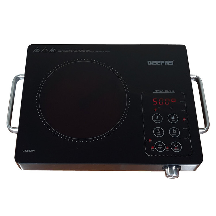 شرکت جی پاس GEEPAS با عرضه بیش از 1500 کالا در زمینه لوازم برقی و خانگی و ... بیش از 37 سال است که در آسیا و اروپا و قاره آمریکا فعالیت مستمر دارد.اجاق گاز مادون قرمز ( Infrared) یا بعبارتی اجاق برقی القایی مدل GIC6920N با دارا بودن صفحه شیشه ای مشکی یک دست بسیار مقاوم به حرارت بطور یکدست در بالای اجاق ، تنها حرارت را در محدوده دایروی که با خط چین نیز مشخص شده است ایجاد می کند و در بقیه مناطق صفحه دما کاملا با دمای محیط یکسان است .می توان هر گونه ظرفی را برروی دستگاه قرار داده و دمای حرارت ساطع شده را از 60 درجه تا 2000 درجه سانتیگراد تنظیم کرد . اجاق دارای صفحه نمایش سون سگمنت با 4 رقم می باشد که می توان دما و زمان تنظیم شده تایمر و ولتاژ برق را نیز مشاهده کرد. گرمای ساطع شده را می توان در دو حالت حلقوی و یا مرکزی و نیز ترکیب این دو با هم ایجاد کرد.دستگاه دارای قفل می باشد که با نگه داشتن بمدت 5 ثانیه فعال و نیز به همین صورت غیر فعال می شود . کل عملیات کنترل بطور کامل لمسی است . توان حرارتی دستگاه 2000 وات می باشد دستگاه از تایمر 3 ساعته برخوردار می باشد .با روشن شدن دستگاه فن آن به کار می افتد و بعد از خاموش کردن دستگاه نیز تا هنگام خنک شدن کامل دستگاه جهت جلوگیری از آسیب رسیدن به دستگاه و یا کاربر ، فن کار می کند و بطور خودکار خاموش می شود پس دستگاه را تا هنگام خاموش نشدن فن از برق نباید خارج کرد .دستگاه دارای 3 شاخه خارجی مجهز به فیوز داخلی جهت حفاظت از شبکه برق خانگی و خود دستگاه برخوردار است.