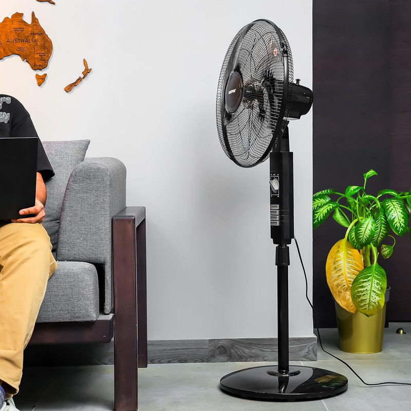 به این پایه ایستاده اجازه می دهد تا نسیم خنکی را در اطراف خانه یا دفتر کار ایجاد کند. ایده آل برای اتاق خواب، اتاق نشیمن یا نزدیک میز شما. سرعت کم، متوسط و بالا باعث می شود این دستگاه در کل خانه مناسب باشد.به شما این توانایی را می دهد که هوای خنک کننده را دقیقاً در جایی که به آن نیاز دارید هدایت کنید. پایه یا پایه فن 18 اینچی با تغییر ارتفاع فن به سمت بالا یا پایین تنظیم میشود، در حالی که سر کج به عقب به شما امکان میدهد هوا را به سمت کف، سقف یا هر جایی در این بین هدایت کنید.