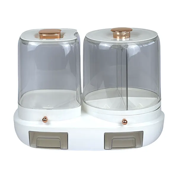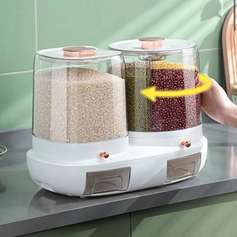 جاحبوجابرنجی دوقلو با مخزن برنج 5 کیلوگرمی و مخزن حبوبات چهار قسمتی چرخشی، محصولی شیک و جمعوجور برای خانههای با فضای محدود و خانوادههای پرجمعیت است.